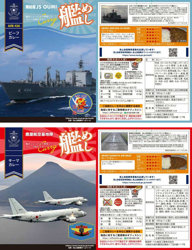 当店のオリジナルカレー2種と、人気のレトルトカレー詰め合わせ 【セット内容 各1食】 ・艦めし 補給艦おうみビーフカレー ・DXビーフカレー ・RGレストラン用ビーフカレー ーーーーーーーーーー ●普段とは違う少し変わり種のレトルトカレーを楽しみたい方に。 ●お世話になっている方へのギフトやお礼に。 ●一人暮らしをしているお子様に。 ●非常食や、ローリングストックとして。 ●キャンプのお供にいつもと違うカレーを。 ●まずは、お試しにいかがでしょうか。 ※カレーの箱のデザインは予告なく変更することがございます。ご了承ください。 ーーーーーーーーーー <艦めし 補給艦おうみビーフカレー 180g> ■名称 カレー ■原材料名 牛肉(...