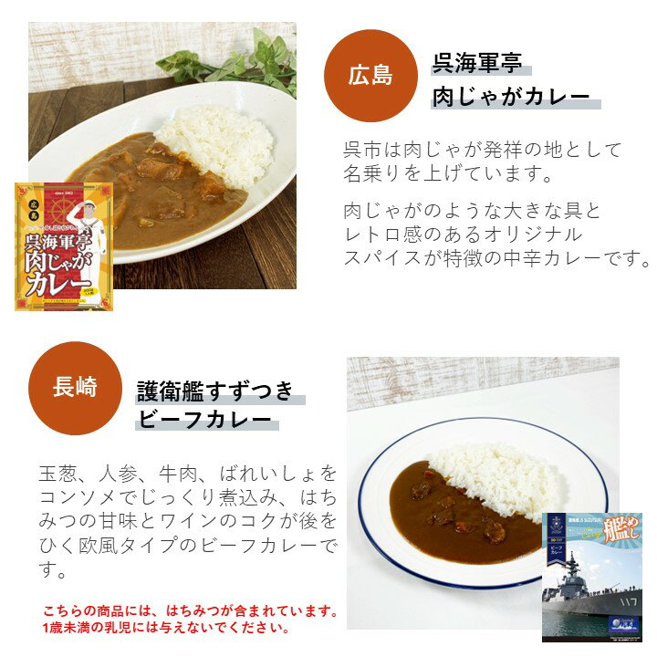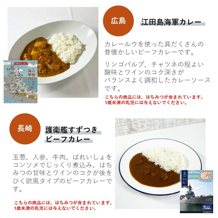 当店のオリジナルカレー2種と、人気のレトルトカレー詰め合わせ 【セット内容 各1食】 ・艦めし 護衛艦すずつきビーフカレー ・DXビーフカレー ・RGレストラン用ビーフカレー ーーーーーーーーーー ●普段とは違う少し変わり種のレトルトカレーを楽しみたい方に。 ●お世話になっている方へのギフトやお礼に。 ●一人暮らしをしているお子様に。 ●非常食や、ローリングストックとして。 ●キャンプのお供にいつもと違うカレーを。 ●まずは、お試しにいかがでしょうか。 ※カレーの箱のデザインは予告なく変更することがございます。ご了承ください。 ーーーーーーーーーー <艦めし 護衛艦すずつきビーフカレー 180g> こちらの商品は、はちみつが...