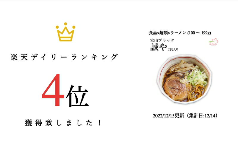 富山ブラックラーメン 誠や ◆商品内容 富山ブラックラーメン 誠や 2食セット 【麺140gx2ヶ 特製スープ52gx2ヶ】 ◆原材料めん(小麦粉、小麦蛋白、還元水飴、食塩、加工澱粉、酒精、かんすい、クチナシ色素)添付調味料(しょうゆ、動物油脂、肉エキス、食塩、チャーシューペースト、砂糖、かつおエキス、調味油脂、香辛料、オニオンエキス、調味料(アミノ酸等)、酒精、カラメル色素、増粘剤(キサンタン)、酸化防止剤(ビタミンE)、(原材料の一部に乳成分、小麦、大豆、豚肉を含む)) ◆賞味期間:製造日より90日間 ◆保存方法:常温保存 直射日光・高温多湿を避けて保存して下さい。 【お届けする食材】 ◇富山ブラックラーメン用 生麺 ...