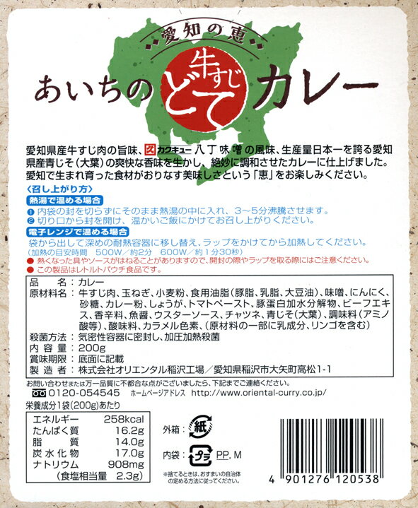 送料無料 オリエンタル 愛知の恵 あいちの牛すじどてカレー 200g 30個 一般食品 カレー レトルト 中辛