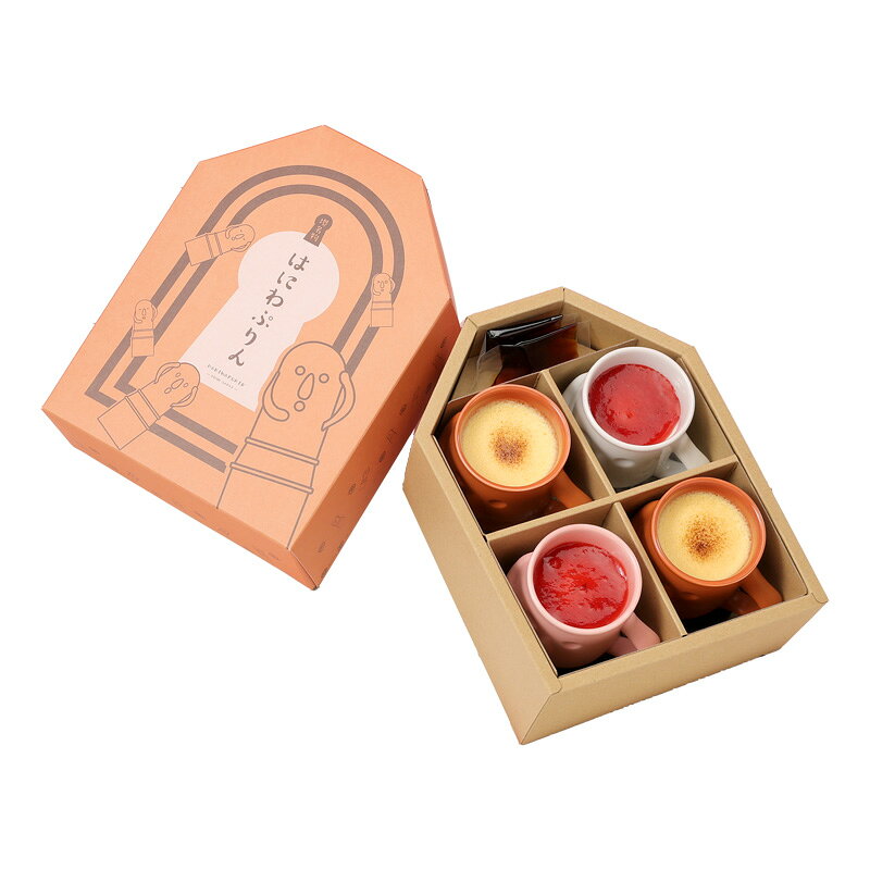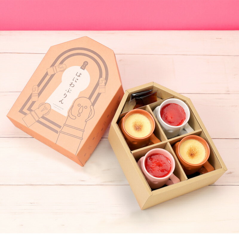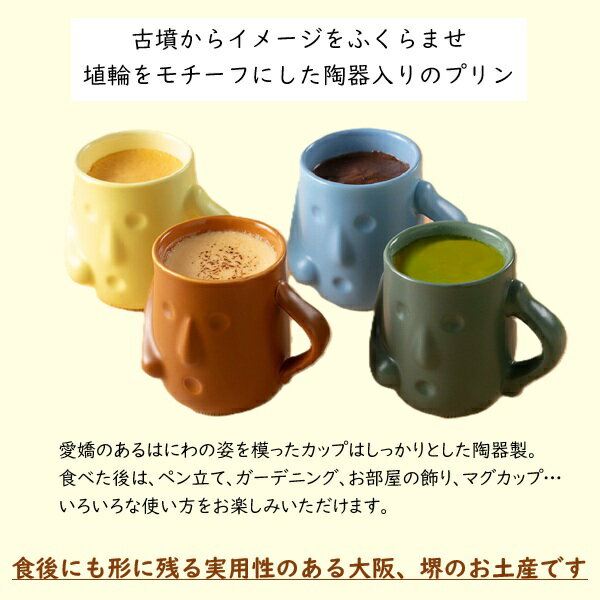 百舌鳥・古市古墳群のおひざもと、大阪・堺市で生まれたプリン、はにわぷりん。こだわりのなめらかな舌ざわりはギフトにも。一つ一つ丁寧に仕上げた焼きプリ...