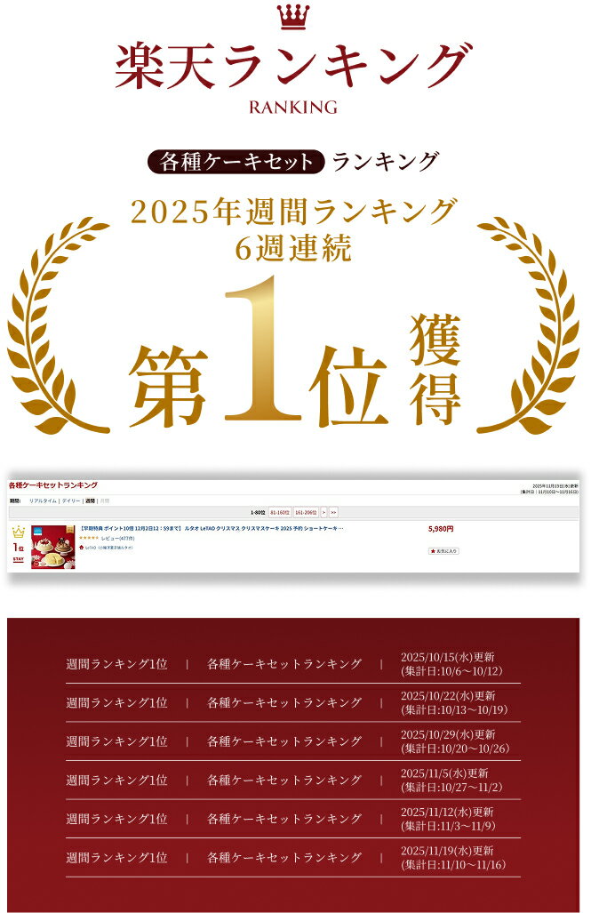 お知らせ おとりよせネットで紹介されました!【4号サイズ】超々早割11月21日~27日3,979円、超早割11月28日~12月3日3,989円、早割12月4日~12月11日3,999円【5号サイズ】超々早割11月20日~27日5,199円、超早割11月28日~12月3日5,299円、早割12月4日~12月11日5,399円 <2025年のクリスマス予約にシュシュクレープギフトのオリジナルケーキはいかがでしょうか?> 昨年ミルクレープ部門年間1位になった当店のオリジナルホールケーキです。北海道産純生クリームにホワイトチョコレートとイチゴのコンフィを重ねた手作りミルクレープケーキ。見た目も可愛くクリスマスパーティーにピッタリ。ラッピング飾りも多くの高評価・口コミをいただい...