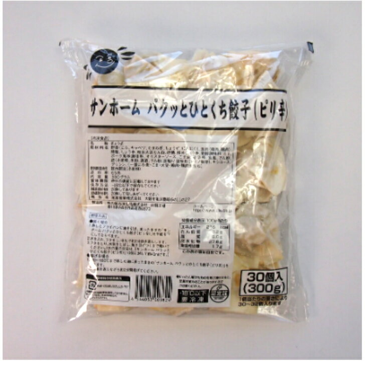 名称 生ぎょうざ 原材料 ひとくち餃子(餃子の皮(小麦粉、なたね油、その他)(国内製造)、豚肉、にら、ごま油、しょうゆ(小麦・大豆を含む)、白菜、大根葉、ガーリック、とうがらし、コショウ、食塩/調味料(アミノ酸等)、 加工デンプン、香辛料抽出物)、タレ(醸造酢(小麦を含む)、しょうゆ(小麦・大豆を含む))、ラー油(ごま油、とうがらし) 内容量 45個入【タレ・ラー油入】 消費期限 製造日含め冷蔵で7日間 保存方法 要冷蔵(10℃以下) アレルギー成分表示 ・表示義務品目 小麦 ・表示推奨品目 豚肉・大豆・ごま 【栄養成分表示】 ひとくち餃子(1個(9g)あたり) タレ・ラー油(1袋あたり) エネルギー 27kcal 11kcal タンパク質 0.8g 0.2g 脂質 1...