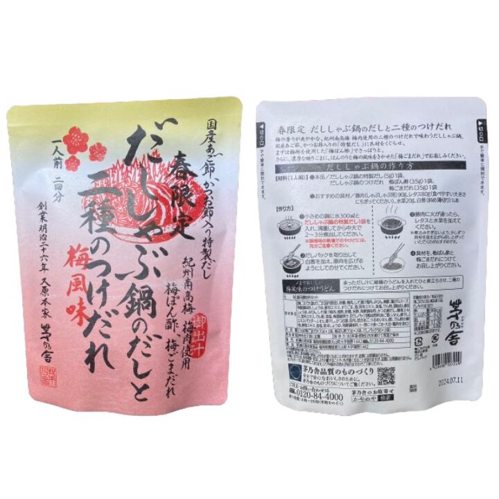 梅の香りが爽やかな、紀州南高梅 梅肉使用の二種のつけだれで味わうだししゃぶ鍋。 国産あご節、かつお...
