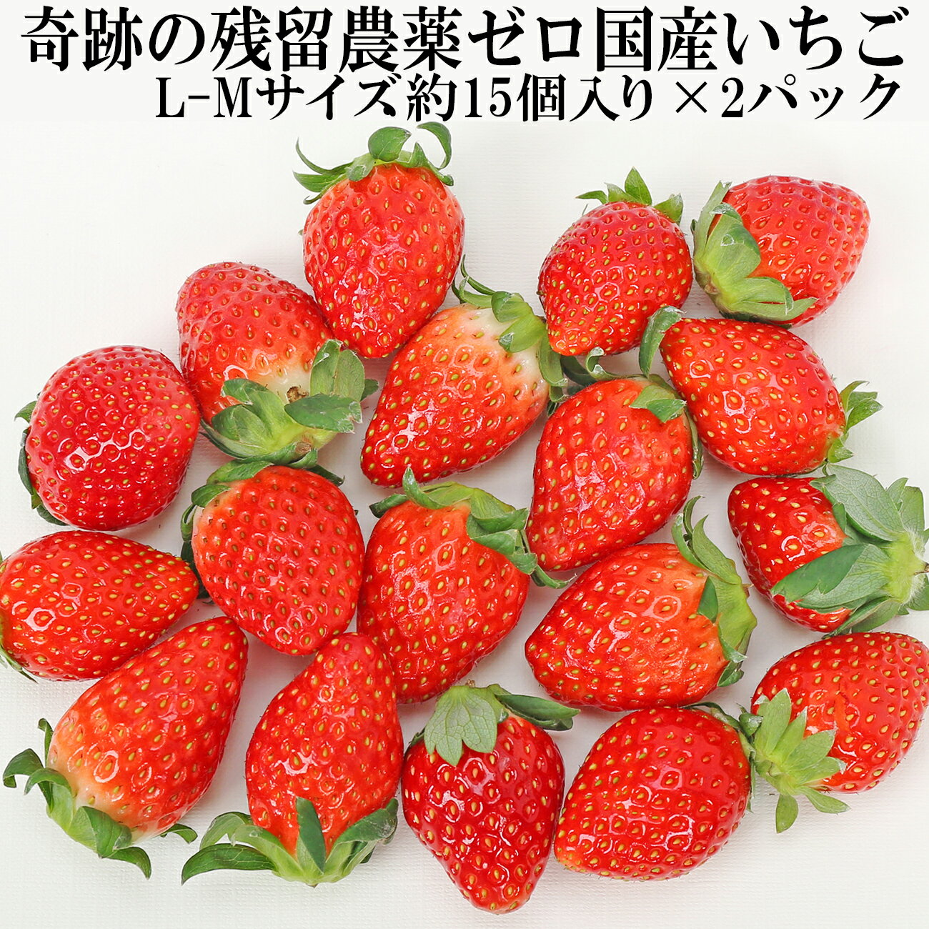 奇跡の 残留農薬ゼロ 国産 いちご L~Mサイズ2パック (合計約30個 ) 化学農薬不使用 奇跡の無農薬いち...